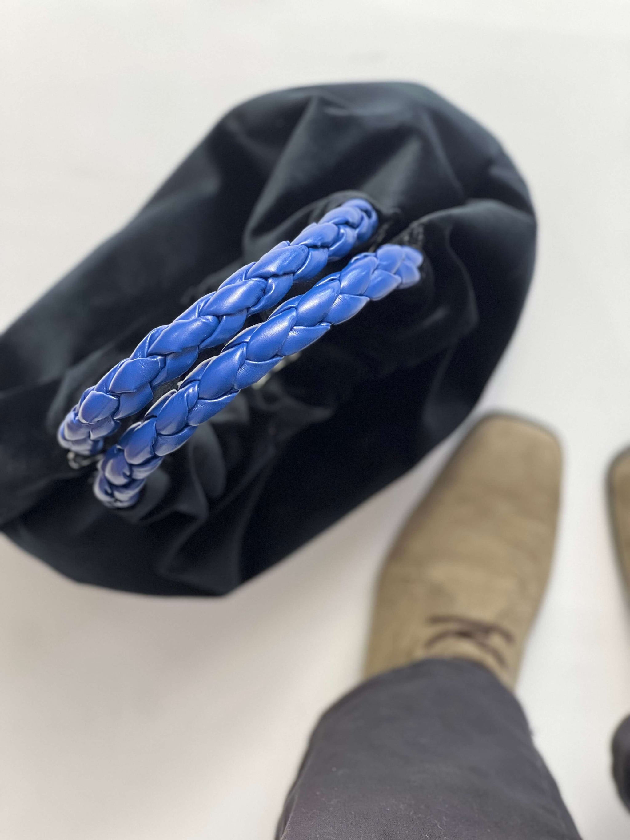 Descubre la elegancia de nuestro bolso bicolor hecho a mano en Elda, confeccionado con un suave y agradable terciopelo negro. Cada detalle ha sido creado con esmero: las asas están trenzadas a mano, aportando un toque único y artesanal. El forro, en delicado vichy de algodón orgánico, garantiza un acabado de calidad y sostenible. Este práctico bolso incluye un bolsillo interior para mayor comodidad. Ideal para quienes buscan estilo y funcionalidad en su día a día. Dimensiones: 30cm x 23cm.